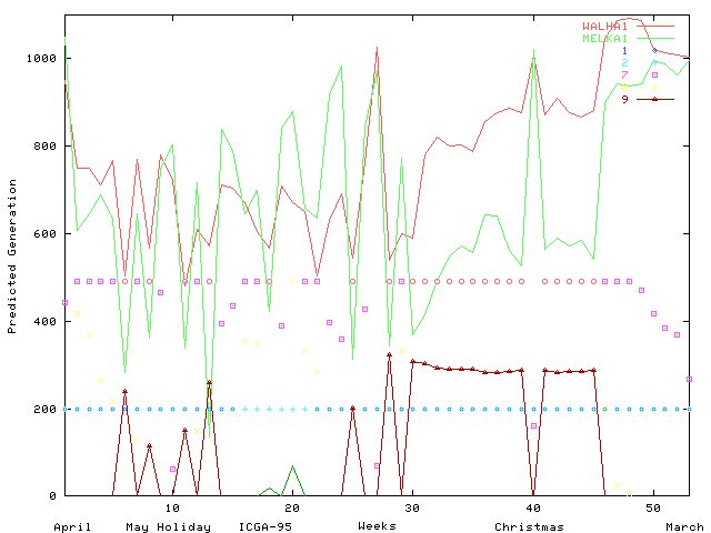 For the South Wales problem the same values of K and S as the four node system where used. I.e. K is 4,000 MW and S = 5. In general the balance between the costs of maintenance and the (typically unknown) costs of not maintaining a plant item is complex. Such choices are beyond the scope of this work, however [Gordon,1995] verified the values used for the four node problem are applicable to the South Wales region.